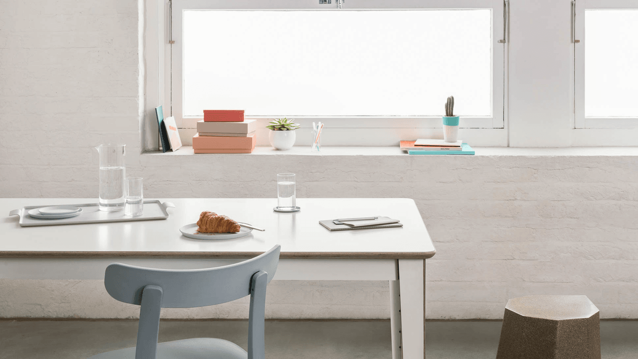 Unit is modular - it was originally designed for an exhibition that also hosted evening dinners, with five units used to create one large communal table. With this in mind, the legs were kept vertical and the overhang minimized, allowing any number of Units to sit neatly side-by-side.